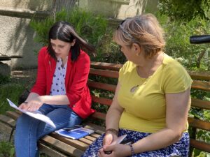 Gheorghina Drumea: Am văzut tranșant că au fost niște deplasări ale diferitelor ONG-uri în teritoriu, dar mai mult au fost prin prisma discuțiilor cu autoritățile și mai puțin au fost cu contact direct cu beneficiarii, așa cum am făcut noi. Necesitatea este stringentă, ținând cont că noi avem în ceea ce ține de comunitatea romă, expres, o problemă foarte mare în analfabetismul celor maturi. Dacă vedem că copiii cât de cât merg la școală, cel puțin părinții insistă asupra acestei chestii, dar părinții din lipsa de cunoaștere a literelor sunt foarte vulnerabili, pentru că nu știu a perfecta elementar o cerere să solicite același ajutor social care i se cuvine, el nu știe să citească o chestie elementară atunci când semnează ceva, sunt foarte vulnerabili în fața organelor de drept. Este foarte ușor să-i întocmești un proces-verbal contravențional, el îl semnează, nu știe ce semnează și pe urmă nici nu poate demonstra chestia asta.