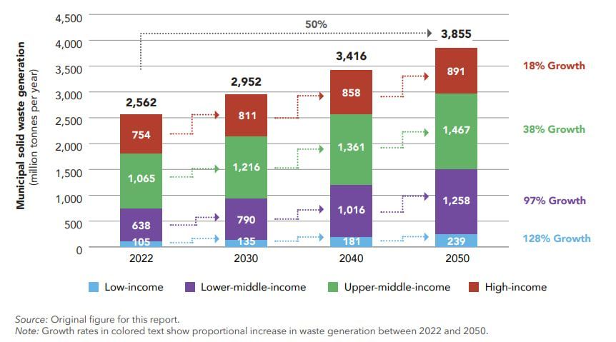 Cu toate acestea, conform unor date mai recente, această cifră a ajuns deja la 2,56 miliarde de tone până în 2022. Până în 2050, această cifră va crește cu aproape 50%, ajungând la o cifră uimitoare de 3,86 miliarde de tone pe an.