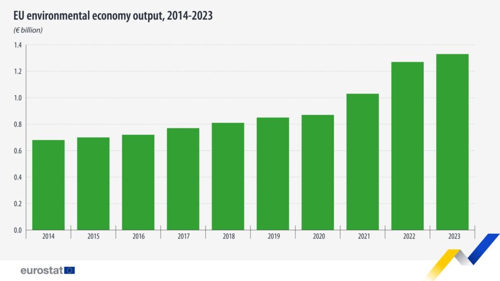În 2023, sectorul de mediu al UE a valorat 1,33 miliarde EUR, în creștere cu 4,3% față de 2022. Din 2014, acest sector a demonstrat o creștere stabilă, cu o medie anuală de 7,9%. În această perioadă, volumul producției aproape s-a dublat, crescând de la 0,68 miliarde EUR la 1,5 miliarde EUR.